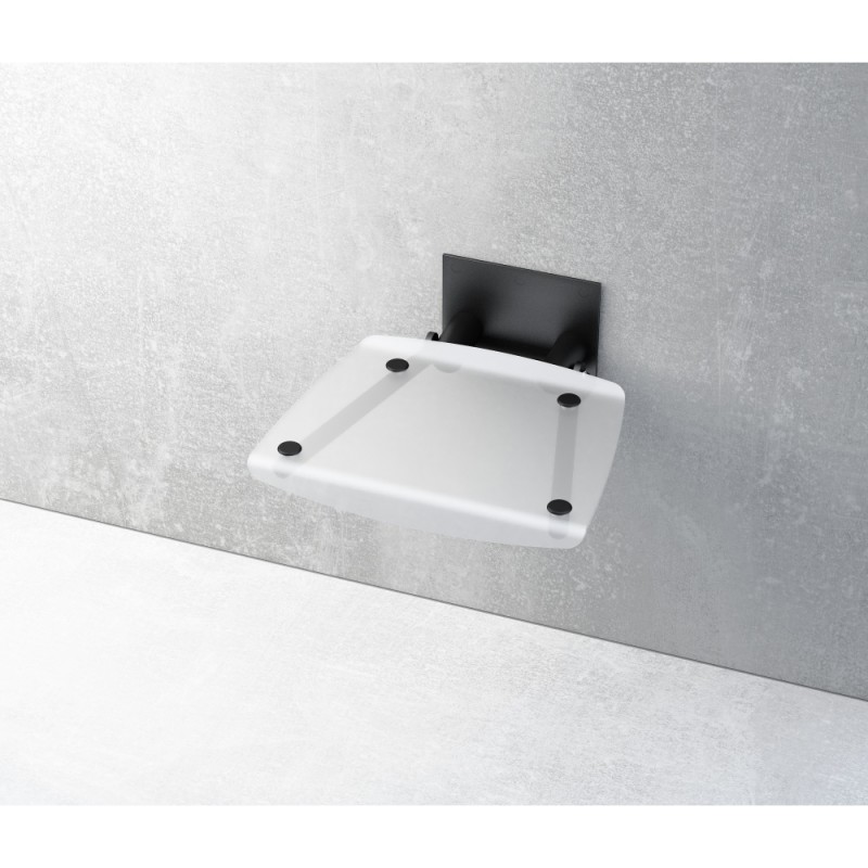 Сидіння OVO-B або OVO-P в чорному кольорі ідеально доповнять дизайн душової кабіни з чорним варіантом профілю.