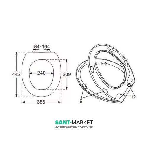 Сидіння з кришкою для унітазу, з Duroplast, з функцією Quick Release та Soft Closing, кріплення з нержавіючої сталі