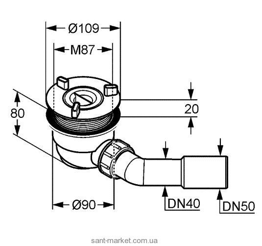 для плоских душ. піддонів із зливним отвором діаметром 90 мм