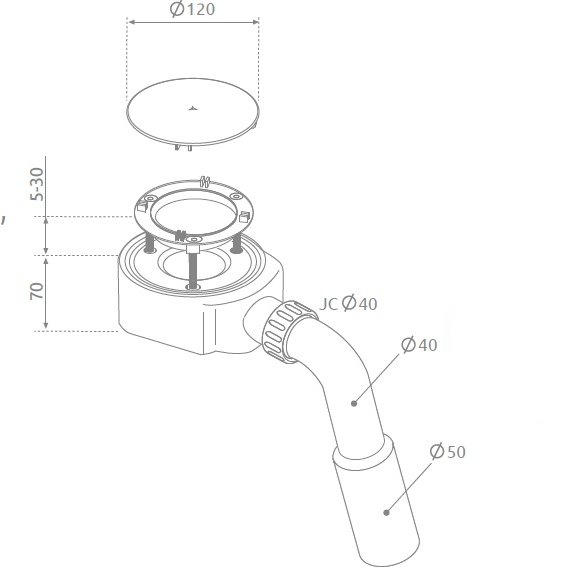 - Сифон для піддонів з отвором Ø 90 мм, самоочищається.