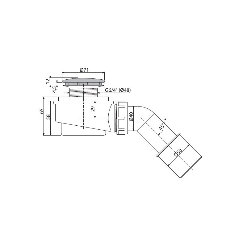 Сифон для душового поддонa AlcaPlast Ø50 мм занижений