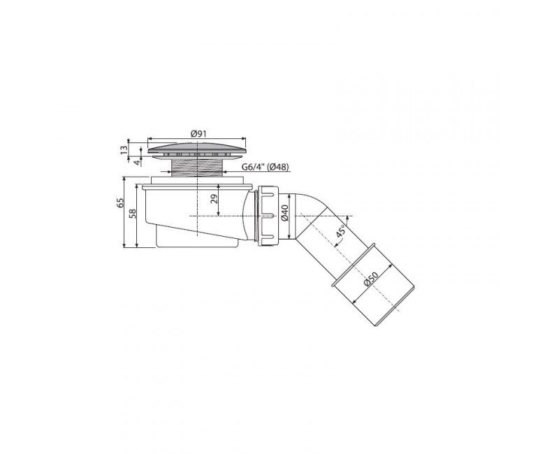 Сифон для душового поддонa AlcaPlast Ø60 мм занижений