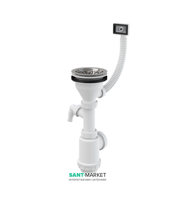Сифон для мийки AlcaPlast з гратами переливом і штуцером