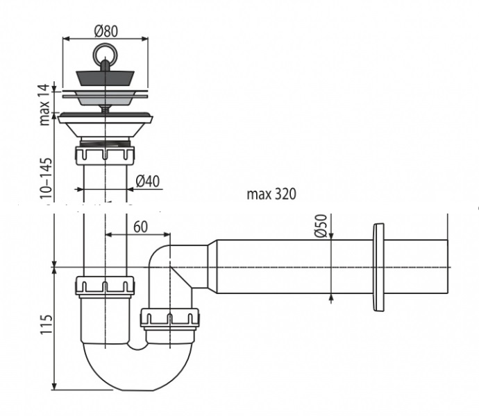 Сифон для раковини AlcaPlast з гідрозатворів A464-DN50