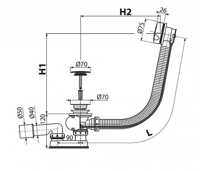 Сифон для ванни AlcaPlast автомат комплект білий A51BM