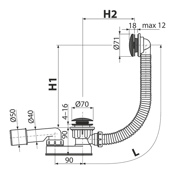 Сифон для ванни AlcaPlast Click-Clack чорний матовий