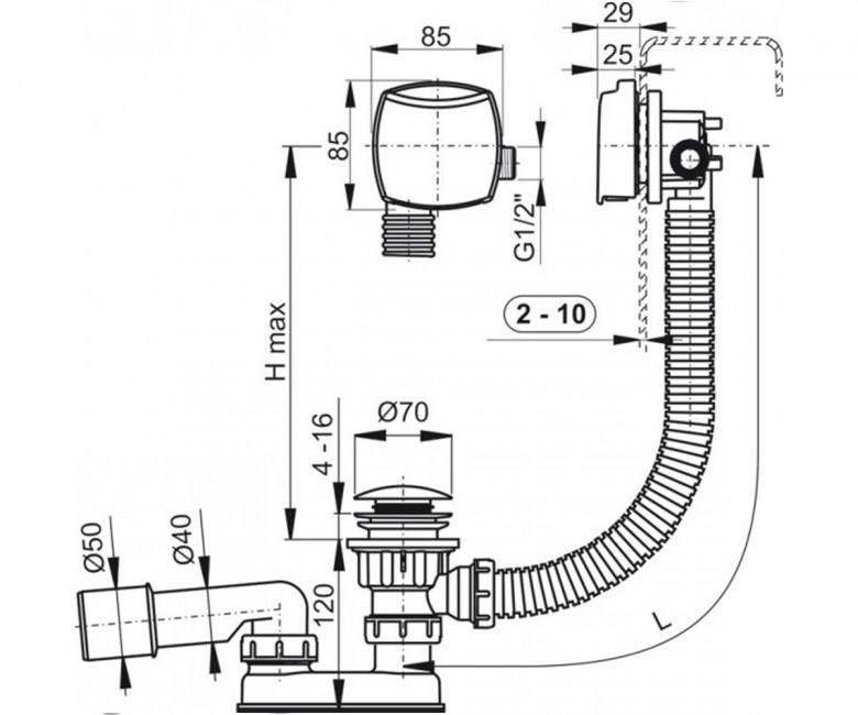 Сифон для ванни AlcaPlast Click-Clack з напуском води через перелив