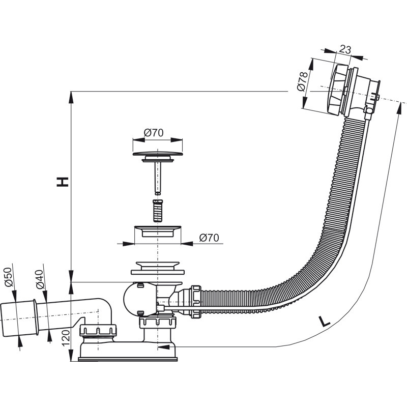 1) Сифон для ванни KollerPool автомат комплект метал 80 см