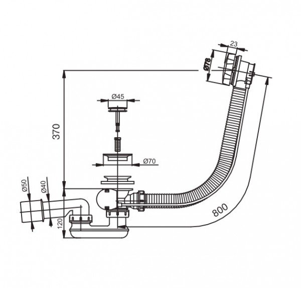 1) Сифон для ванни KollerPool автомат комплект метал 80 см