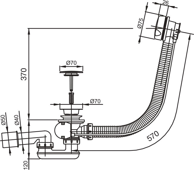 - Сифон з поліпропілену, стійкий до перепадів температур, впливу хімічних речовин