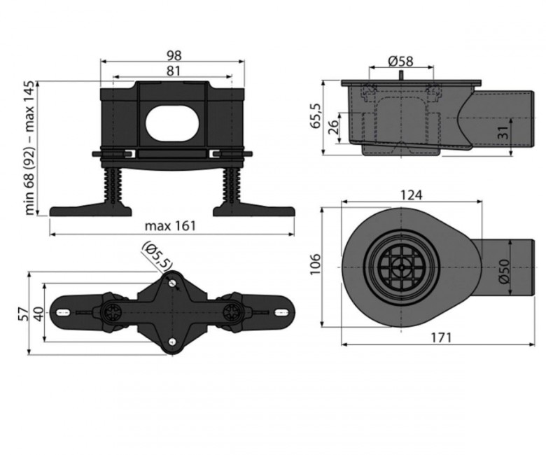 Сифон для водовідвідного жолоба AlcaPlast з комплектом регульованих ніг APZ-S9