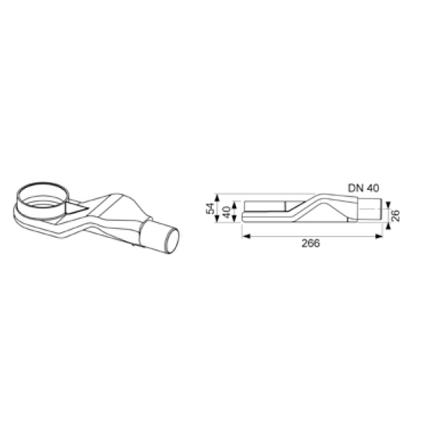- утворює поворотний з'єднання в корпусі каналу, бічне з'єднання з каналізаційною трубою DN 40,