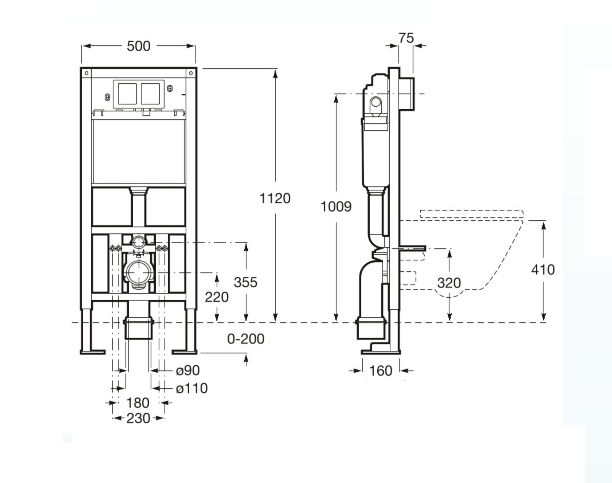 - DUPLO WC FREESTANDING - інсталяційна система з компактним бачком з подвійною системою змиву 3/6 літрів і інсталяційними кріпленнями, мінімальна глибина. Каркас для свободностоящей установки