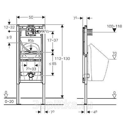 - кріплення для сифона Rp 1/2 регулюється по висоті і в сторони
