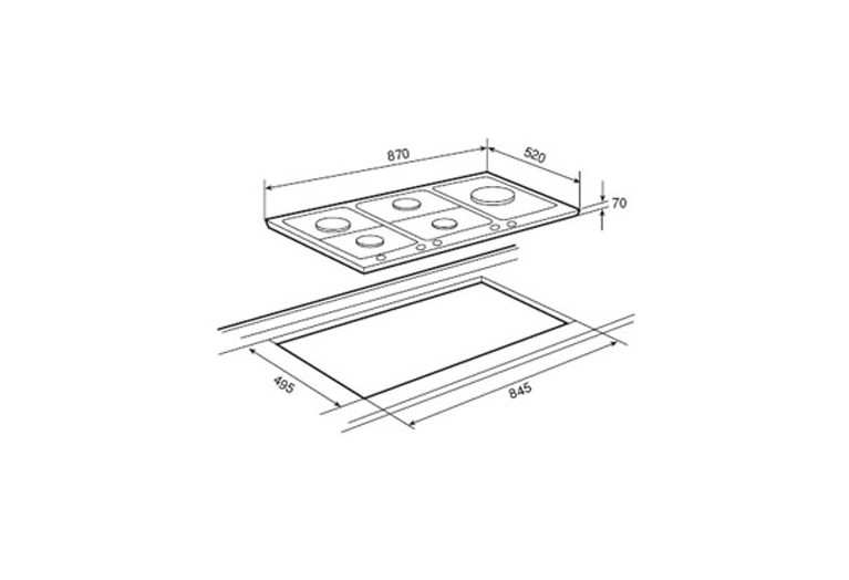 Розміри 87x52 см; Колір чорний; Електрозапалювання: є; Газ-контроль; Конфорок (шт): 5; Тип: незалежна; Тип поверхні: газова; Пристрій: варильна поверхня.