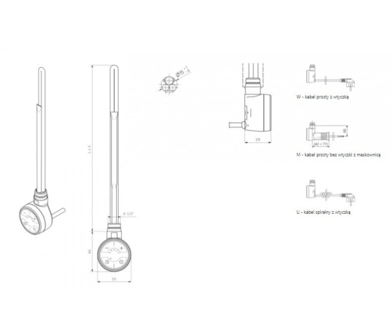 ТЕН для сушки для рушників Terma Moa 600 Вт прихований монтаж кабелю хром WEMOA06TCROM