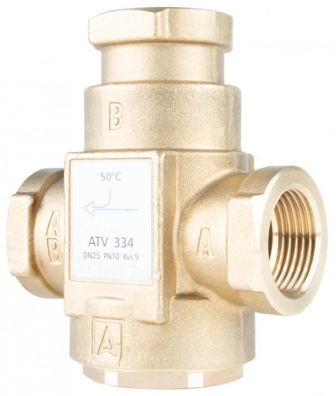 Термічні клапани ATV виконані з латуні і мають внутрішнє різьблення. Усередині клапана є термічний елемент, який регулює температуру води, що повертається в котел і підтримує її на постійному мінімальному рівні. Температура відкриття вказує на температуру, при якій клапан ATV починає закривати підключення А за допомогою термічного елемента. Клапан може встановлюватись у всіх положеннях. Застосування клапана ATV не потребує встановлення додаткових регулюючих клапанів для його підключення. Конструкція клапанів ATV дозволяє замінити термічний елемент без демонтажу клапана із системи.