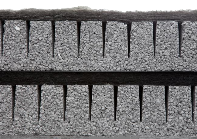 - Зовнішня оболонка зі шкірозамінника, відомого своєю міцністю і довговічністю, на якому і кріпиться внутрішній шар синтепону з клиноподібними вирізами