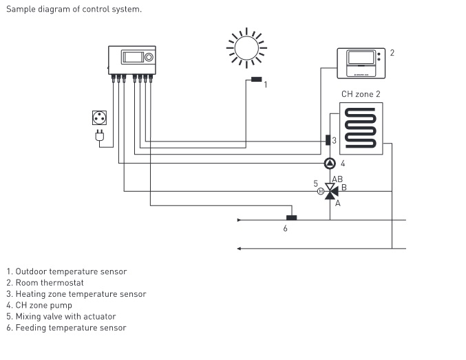 Програмований погодний контролер для керування температурою опалювального контуру за допомогою 3-х або 4-х ходових клапанів та керування циркуляційним насосом центрального опалення. Обладнаний системою захисту від зупинки насоса.