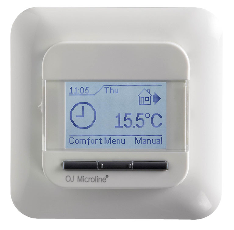 Залежно від часу доби. Термостат має батарею резервного живлення годин і календаря, і тому користувачеві ніколи не потрібно турбуватися про відновлення налаштувань часу при порушенні електроживлення.