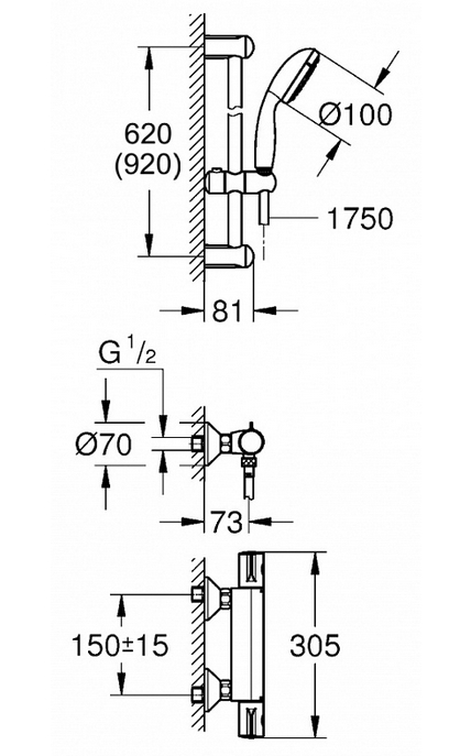 Поспішайте купити Термостат для душу Grohe Grohtherm 800 з душовим гарнітуром хром 34566001 за акційною ціною.