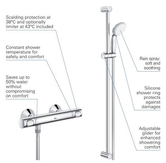 Термостат для душу Grohe QuickFix Precision Flow з душовим гарнітуром хром