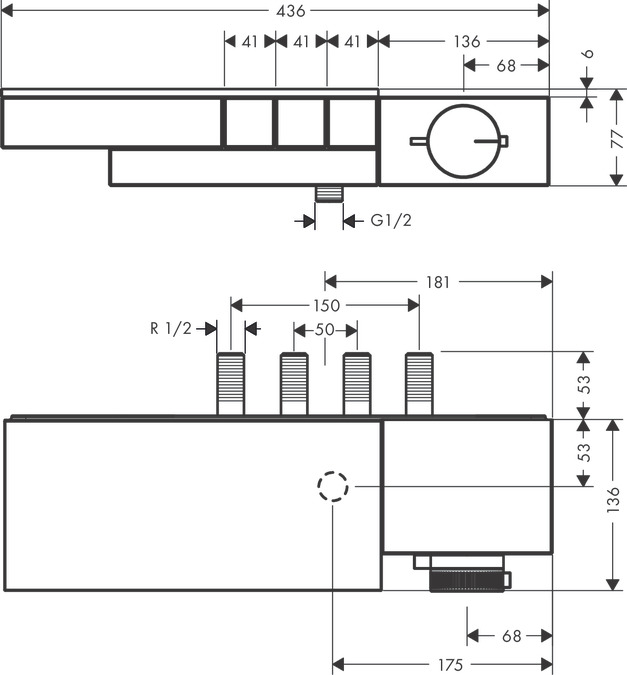 - термостат поставляється з кнопками ручного душа, PowderRain, Rain (великий)
