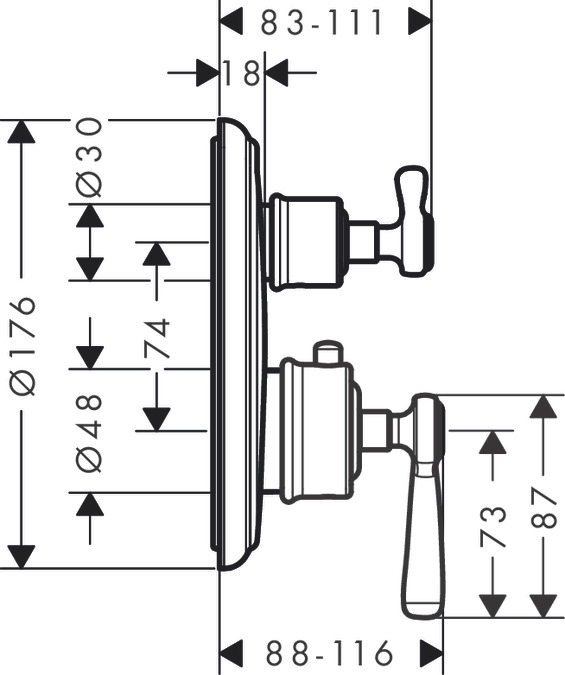 1) Термостат для душа Hansgrohe Axor Montreux вбудовується хром (зовнішня частина)