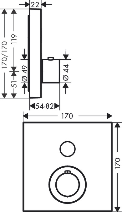 1) Термостат для душа Hansgrohe Axor ShowerSelect 1 споживач чорний (зовнішня частина)
