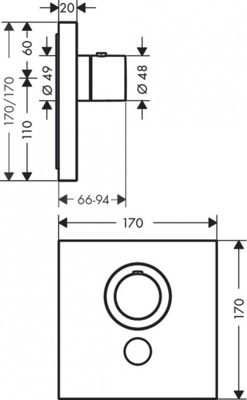 1) Термостат для душа Hansgrohe Axor ShowerSelect 1 споживач чорний (зовнішня частина)