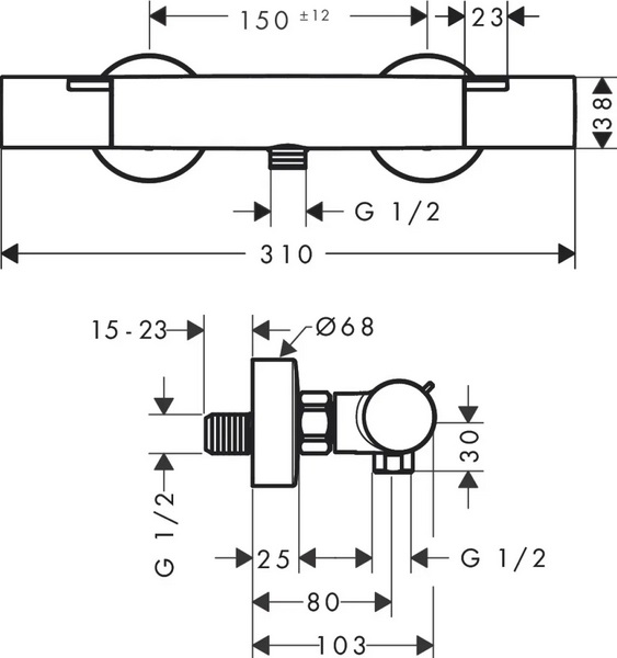 Термостат для душу Hansgrohe Ecostat Fine двовентильний чорний матовий 13324670