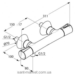 рукоятка вибору температури води з обмежувачем гарячої води за 38° C