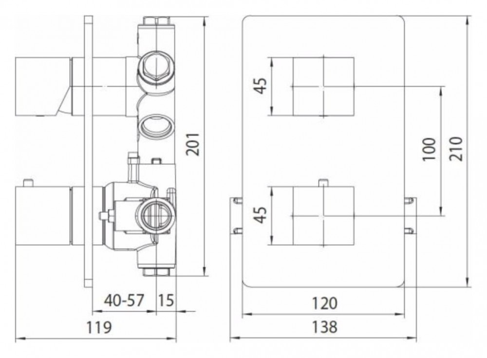 1) Термостат для душу прихованого монтажу Bossini Cube чорний матовий (зовнішня монтажна частина)