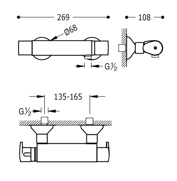 Термостат для душу Tres Basic з ручним душем хром 1901629