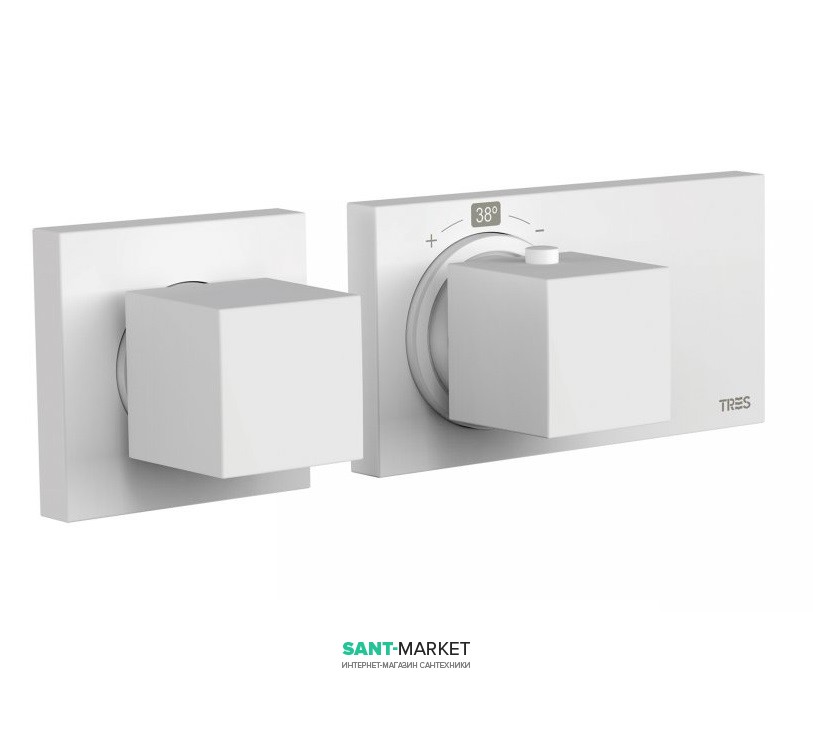 Термостат для душу Tres Block System colors з затвором і регулятором потоку білий матовий 20725199BM