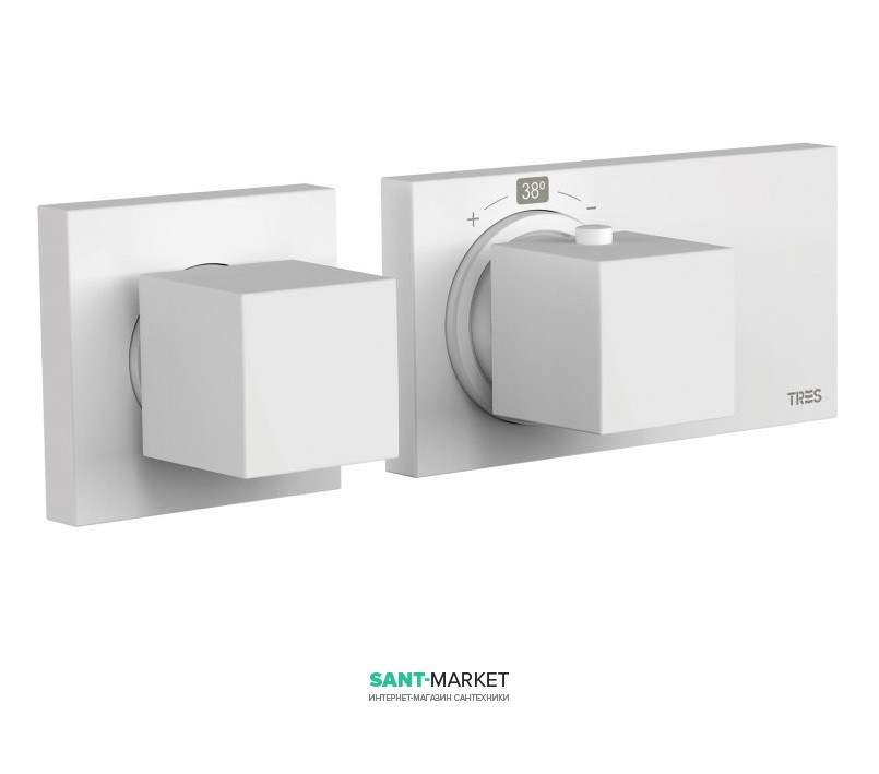 Термостат для душу Tres Block System colors з затвором і регулятором потоку білий матовий 20725299BM