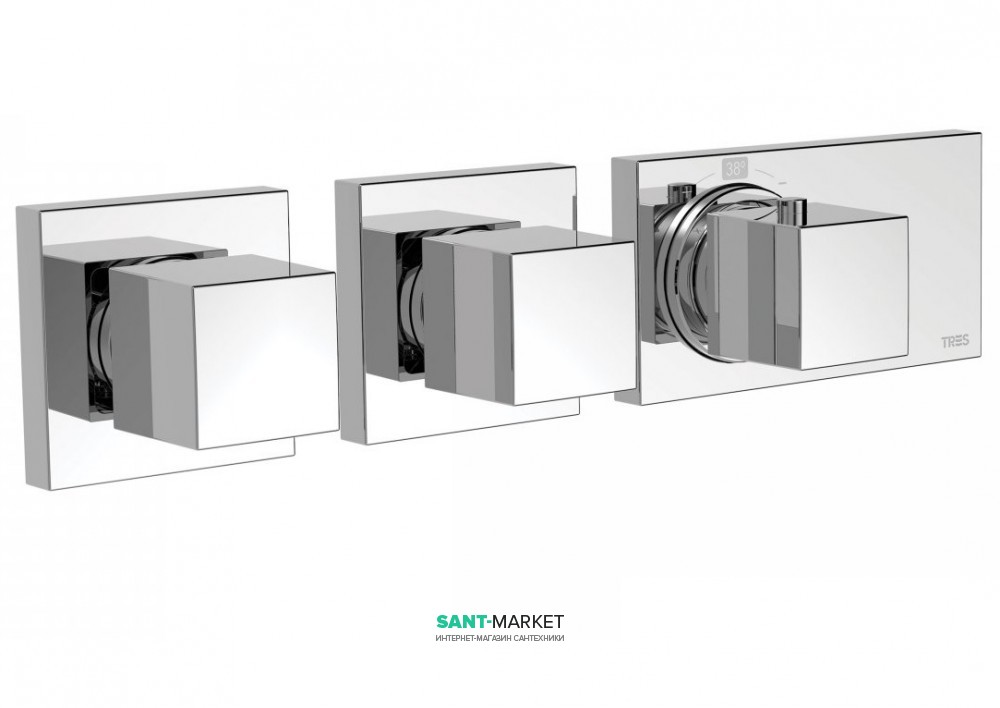 1) Термостат для душа Tres Block System з затвором і регулятором потоку