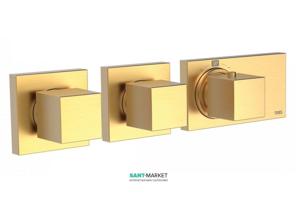 Термостат для душу Tres Block System colors з затвором і регулятором потоку матове золото 20725399OM