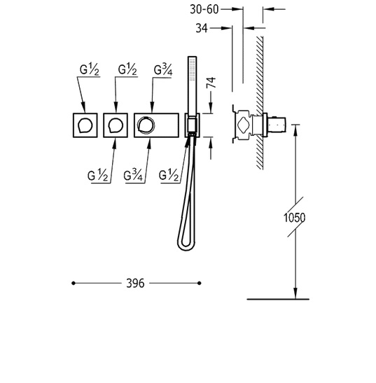Термостат для душу Tres Block System colors 3 споживача білий матовий 20735391BM