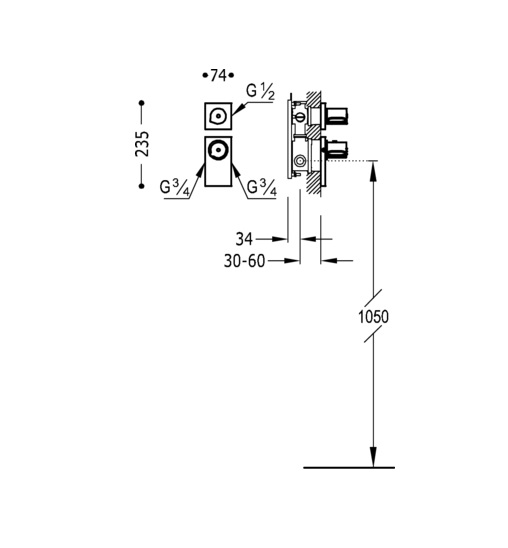 Термостат для душу Tres Block System colors 1 споживач черий матовий 20635199NM