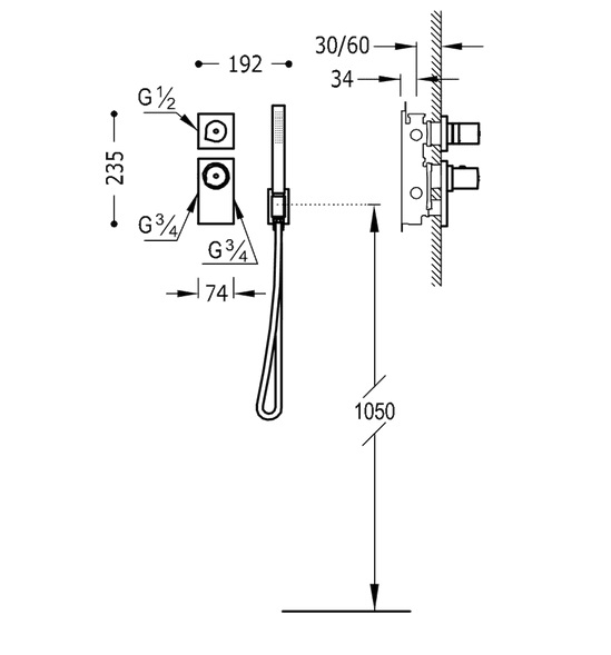 Термостат для душу Tres Block System colors 1 споживач білий матовий 20635191BM
