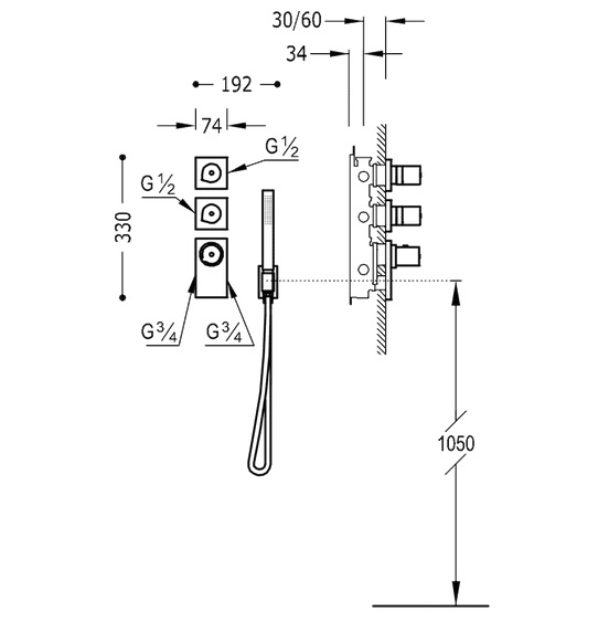 Термостат для душу Tres Block System colors 4 споживача сталь 20635491AC