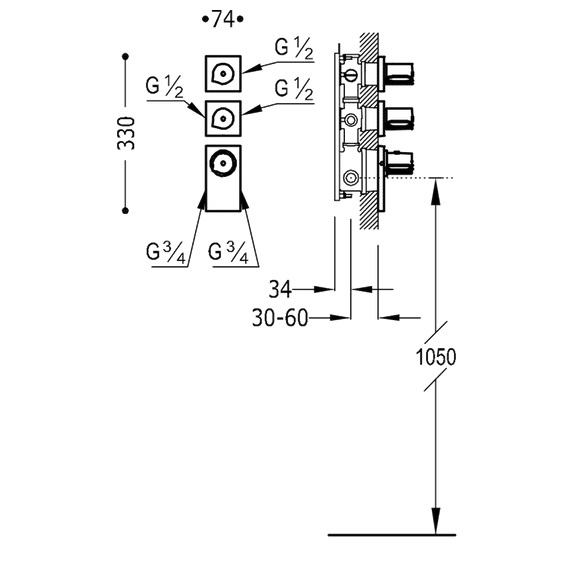 Термостат для душу Tres Block System вбудований 3 споживача хром 20635399