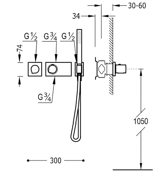 Термостат для душа Tres Block System з ручним душем 1 споживач хром