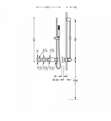 - Змінна штанга з настінним водозабором. Довжина 760 мм