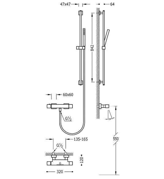 - Термостатичний змішувач для ванни з каскадним виливом