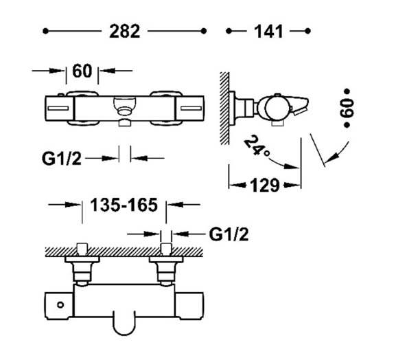 - Стінний термостатичний змішувач змішувач дляванни