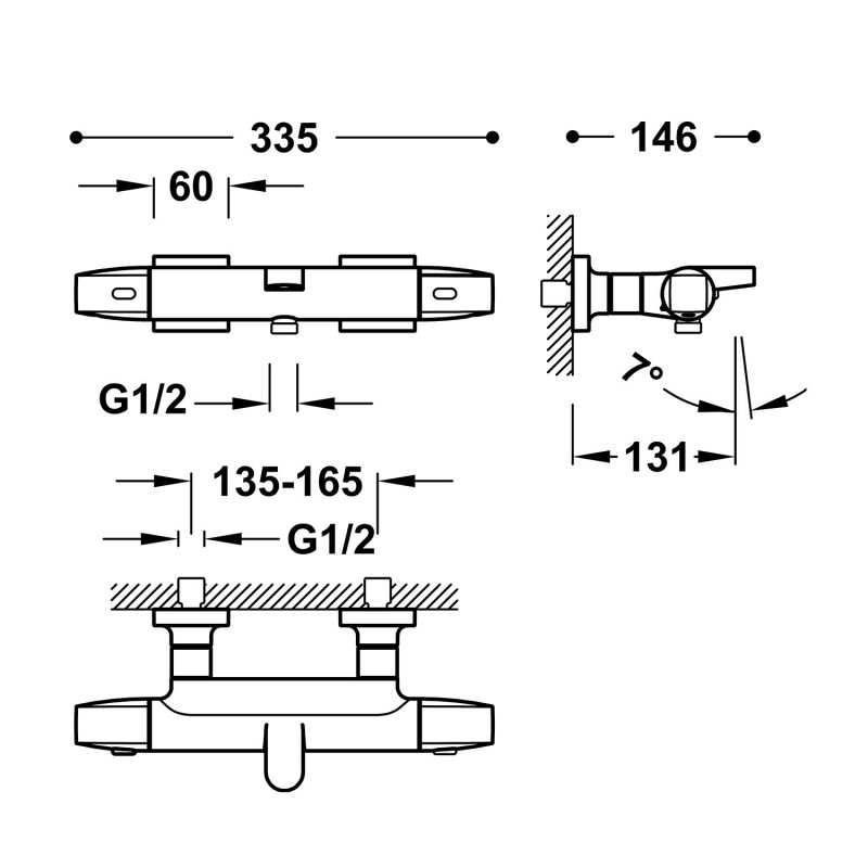 Термостат для ванної Tres Over-wall настінний двовентильний чорна бронза