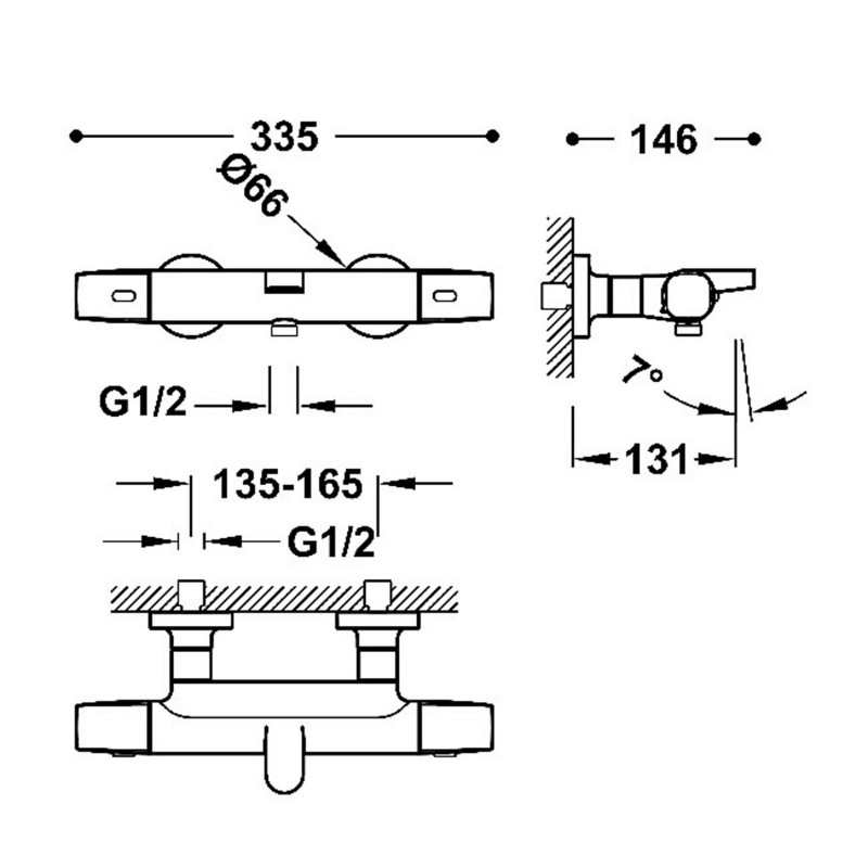 Термостат для ванної Tres Over-wall настінний двовентильний чорна бронза