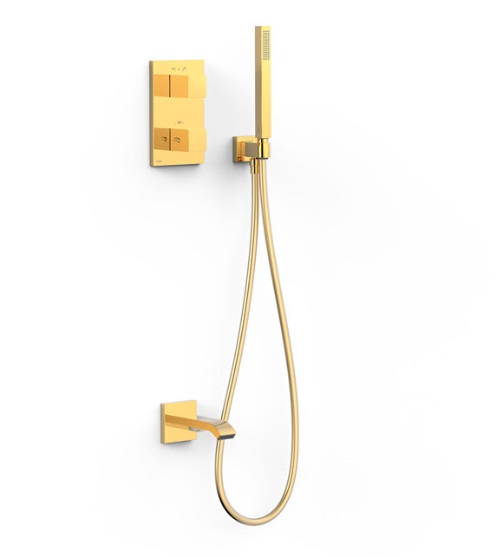 Термостат для ванної Tres Therm-Box на 2 споживача з душовим гарнітуром золото 00625006OR